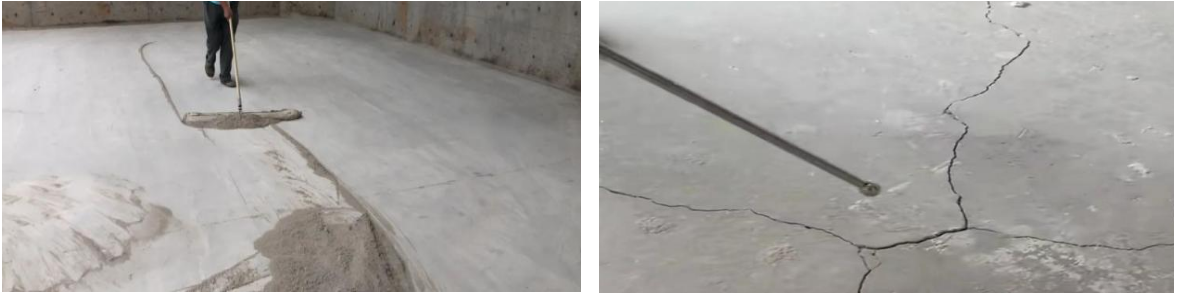 3、對于細小裂縫應先用磨機切成V型槽,并用快干無溶劑環(huán)氧砂漿進行灌縫處理;