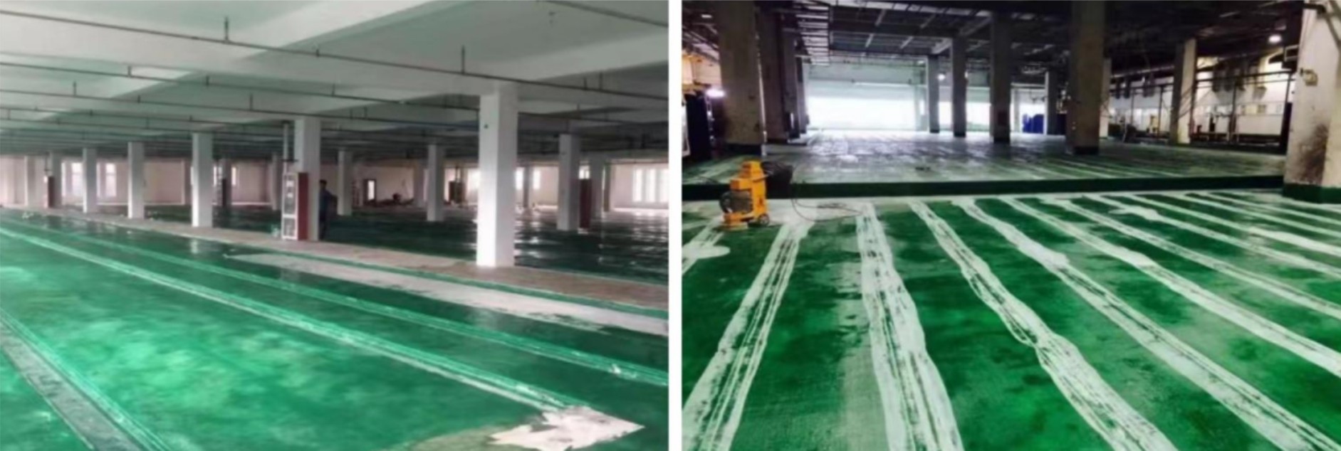 清除地面表面的浮漿,使地面與底涂增加附著力,采用自吸塵打磨機將所有施工面全部打磨平整毛糙,使環(huán)氧底涂能與水泥地面更好的粘合。